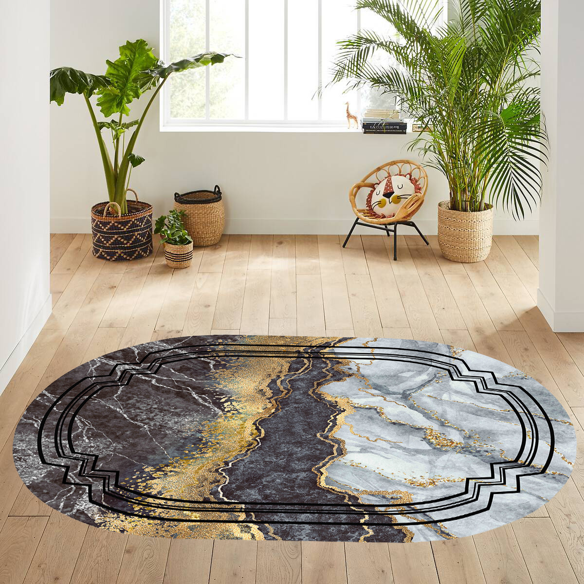 Rovigo Home Dijital Baskı Yıkanabilir Kaymaz Taban Oval Halı RVG7078