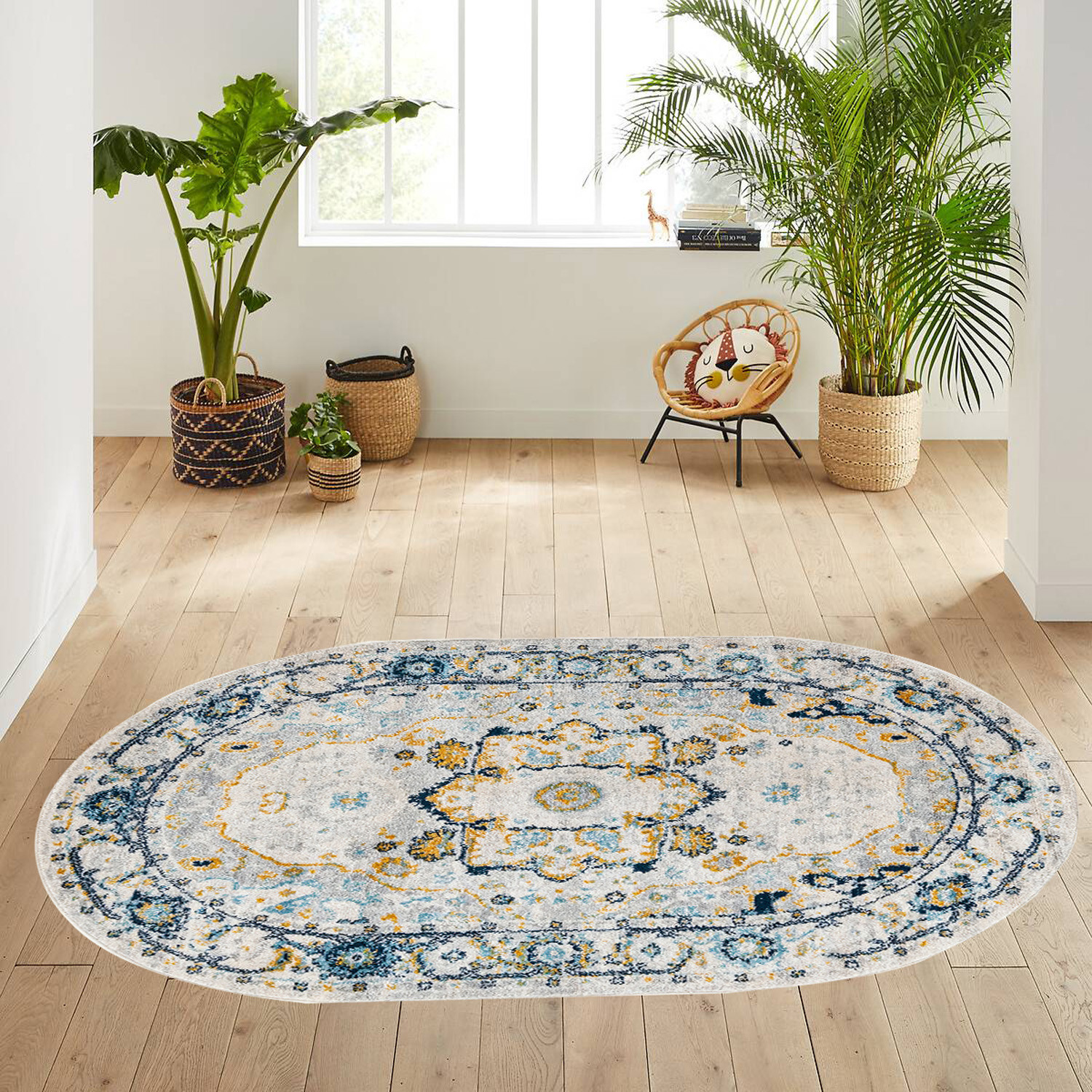 Rovigo Home Dijital Baskı Yıkanabilir Kaymaz Taban Oval Halı RVG7181