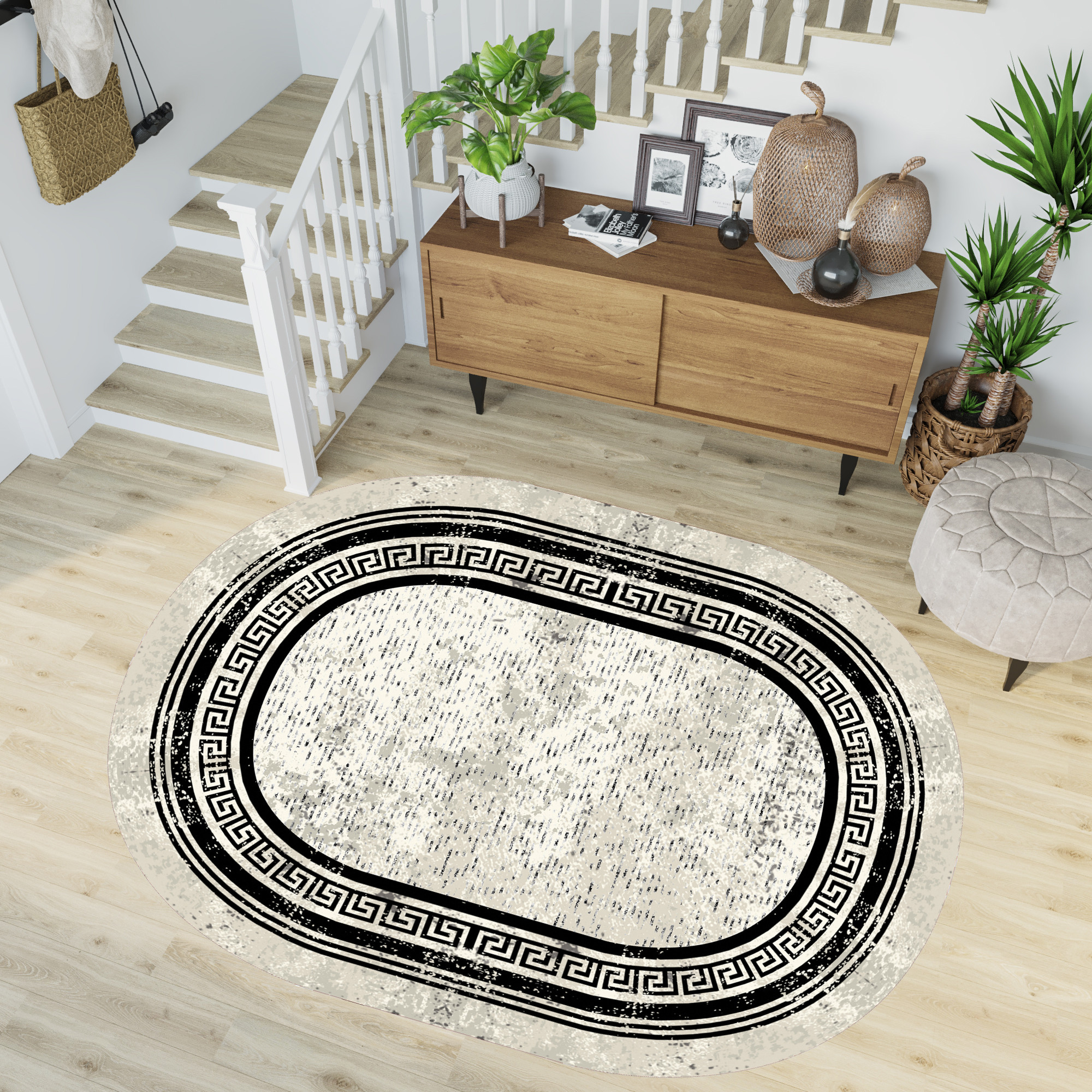 Rovigo Home Dijital Baskı Yıkanabilir Kaymaz Taban Oval Halı RVG7201-SD1044