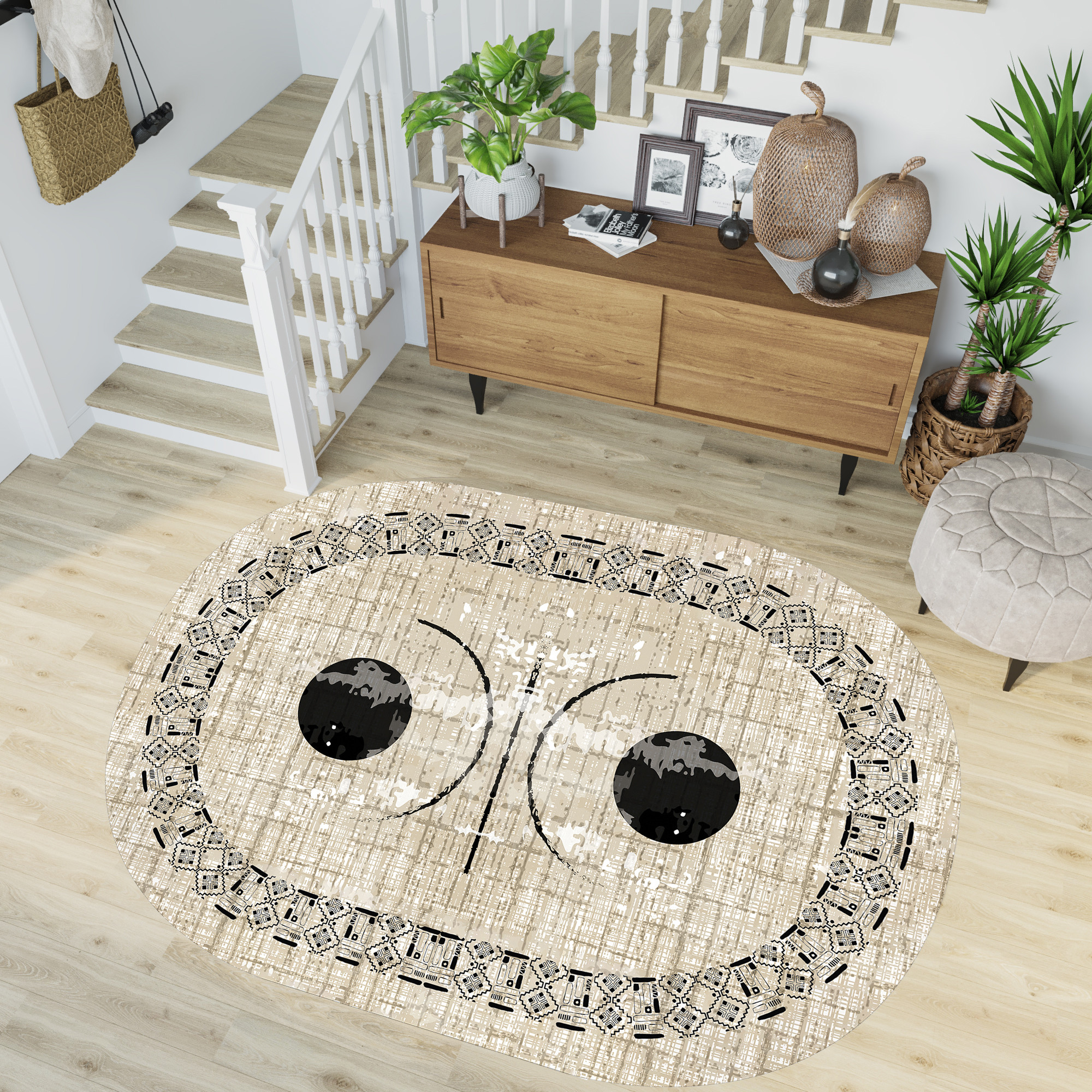 Rovigo Home Dijital Baskı Yıkanabilir Kaymaz Taban Oval Halı RVG7202-SD1068