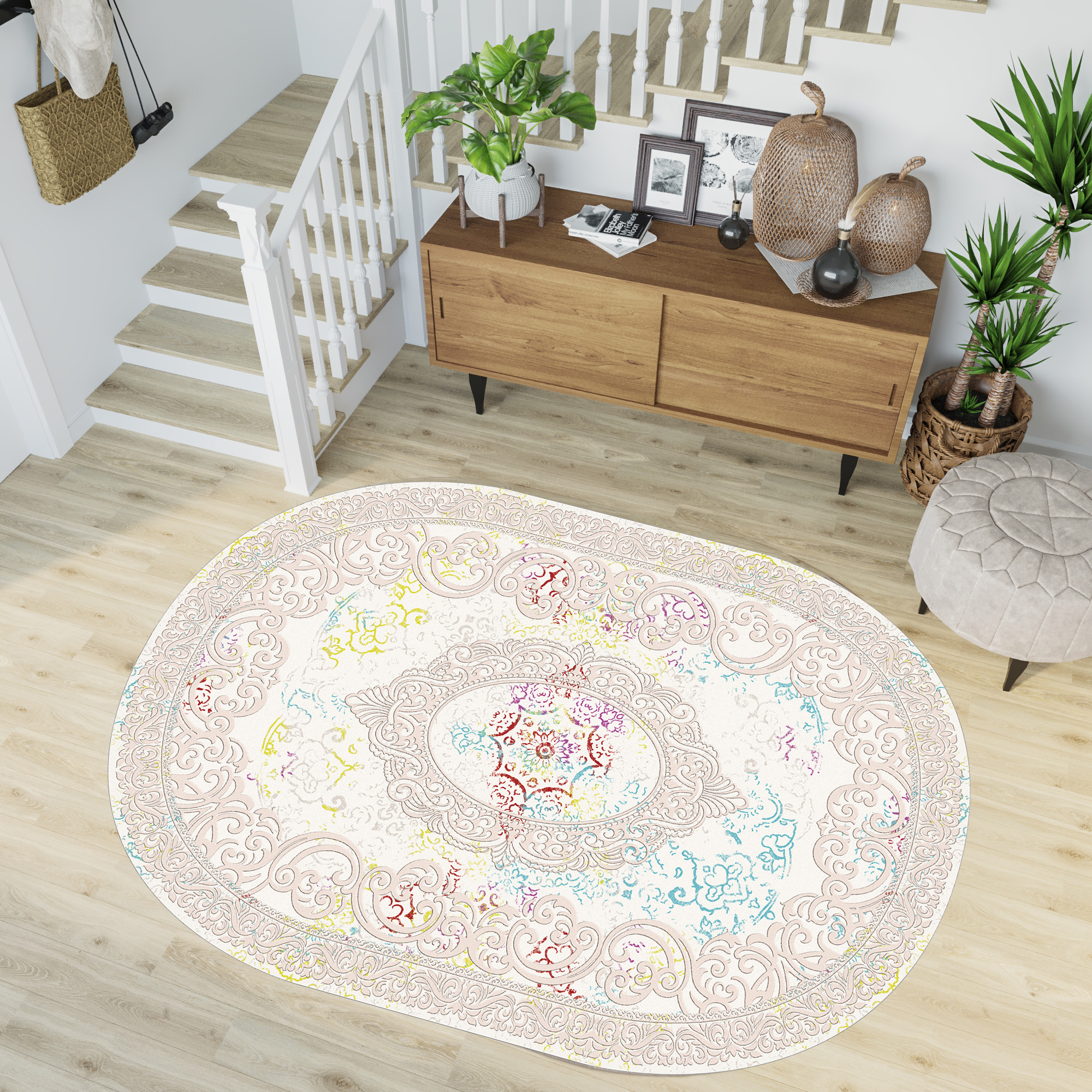 Rovigo Home Dijital Baskı Yıkanabilir Kaymaz Taban Oval Halı RVG7207-HY1057