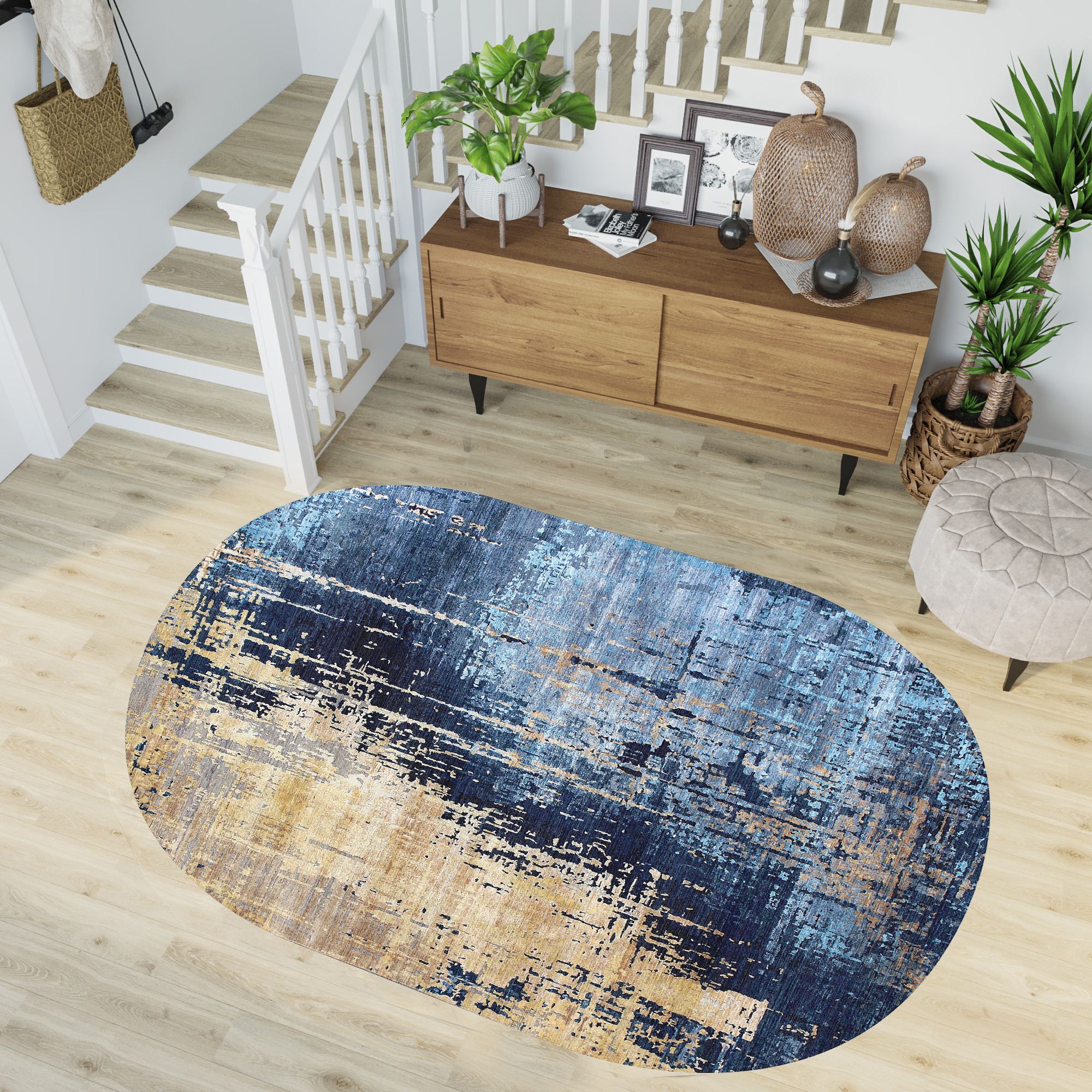 Rovigo Home Dijital Baskı Yıkanabilir Kaymaz Taban Oval Halı RVG7231-SD433