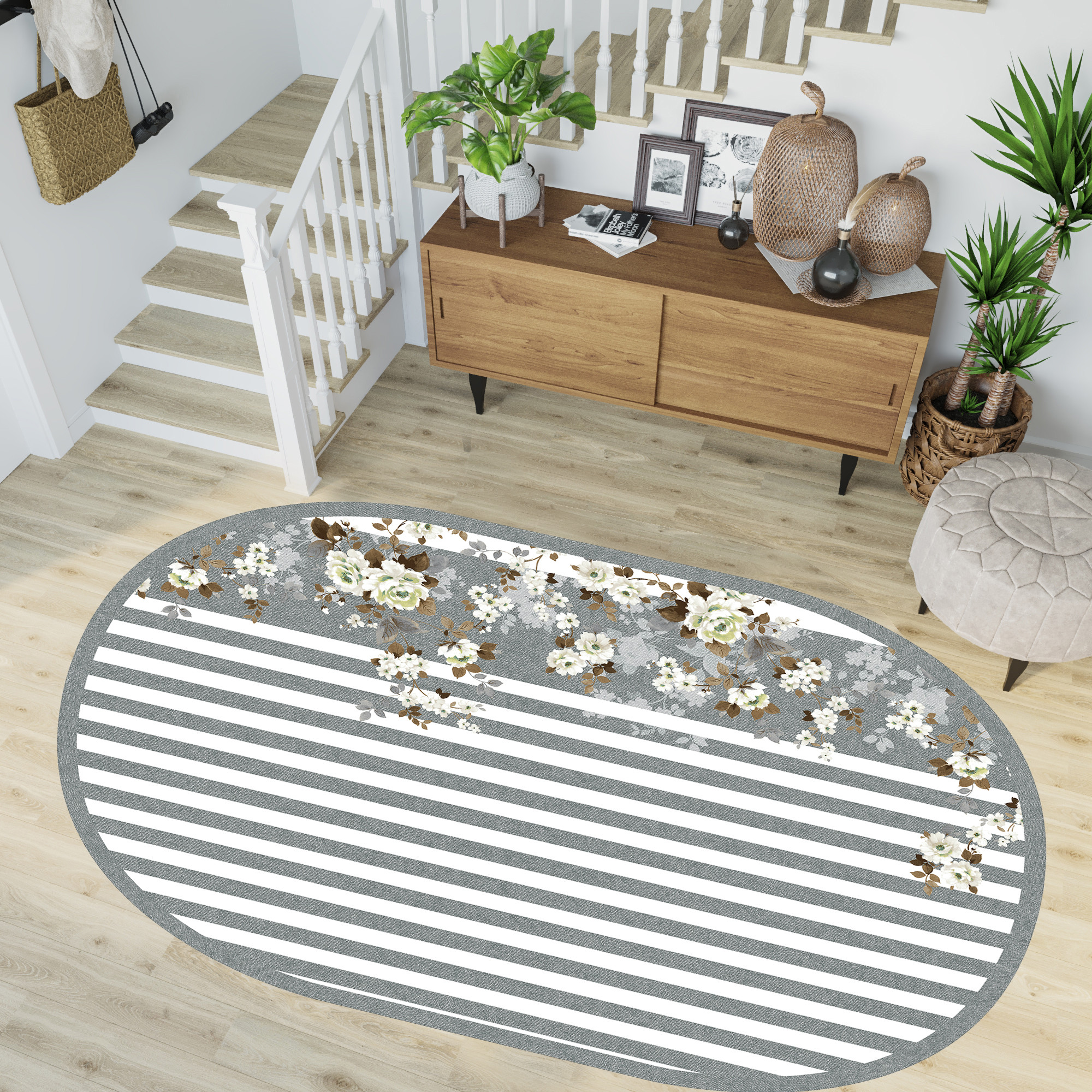 Rovigo Home Dijital Baskı Yıkanabilir Kaymaz Taban Oval Halı RVG7254-HT200