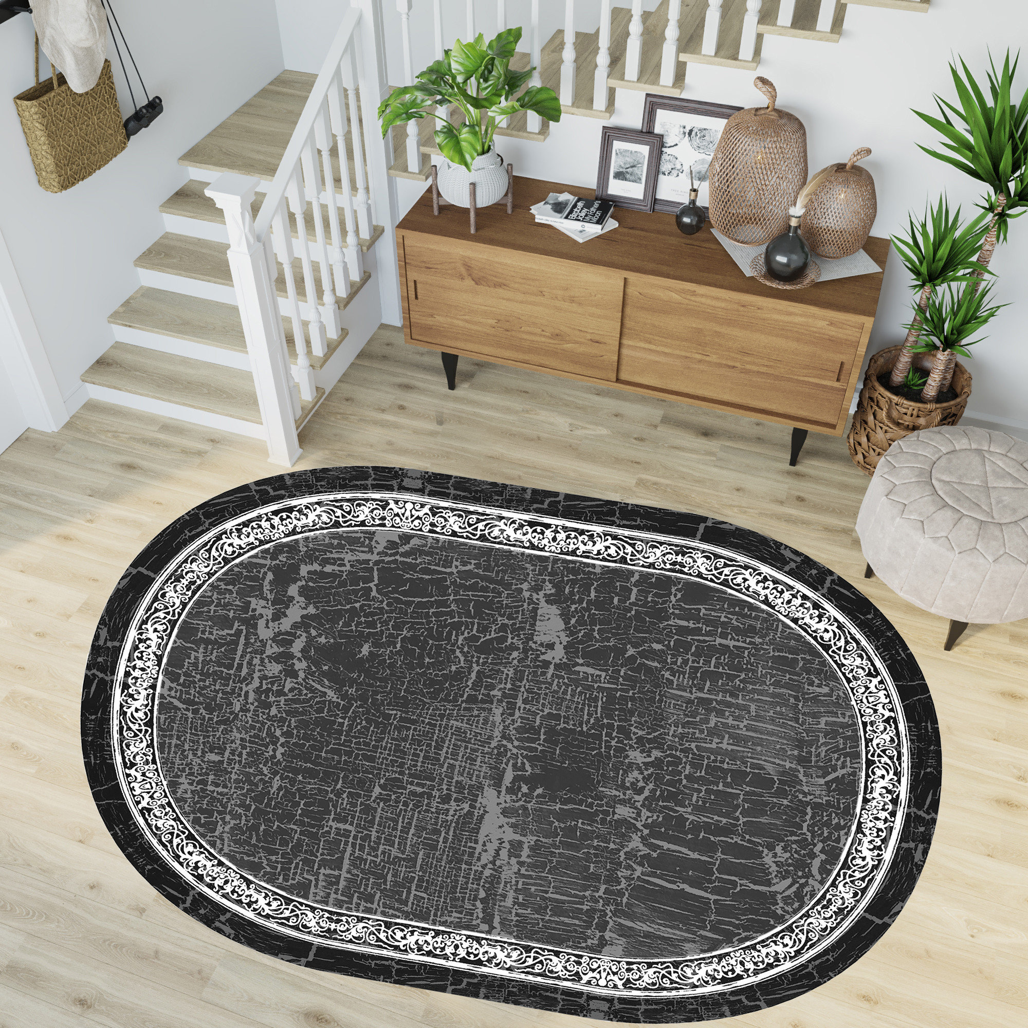Rovigo Home Dijital Baskı Yıkanabilir Kaymaz Taban Oval Halı RVG7272-HY939